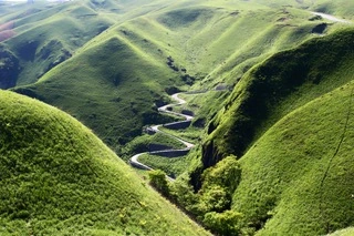 Japan’s largest active volcano looks downright tame, covered in a smooth rolling layer of green felt. Mount Aso’s 100km (60 mile) caldera is one of the world’s largest, and there are several smaller volcanoes inside.